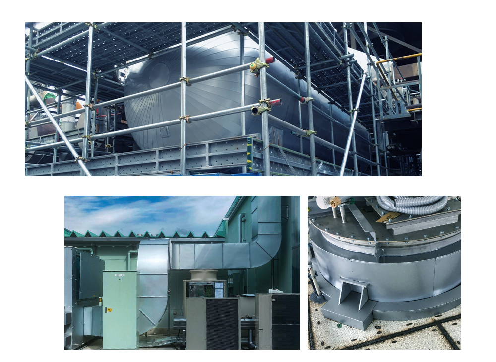 弊社では愛知県・岐阜県・三重県の東海3県にて、マンション・ビル・商業施設・工場・店舗・学校などを対象とする熱絶縁工事(保温工事・保冷工事・防露工事・耐火工事)や板金工事、環境対策を請け負っています。個人のお客さまから建築関係者さままで、幅広い規模のご依頼を承っております。